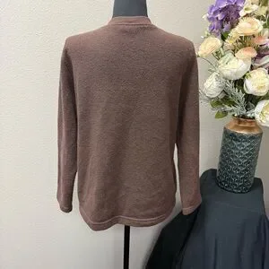 BonWorth Petite Brown Embroidered Bird Floral Button Cardigan Sweater M