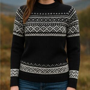 Artesania Women’s Chachani Alpaca Crew Neck Sweater Size Small Size Small Shoulder to hem: 23” Underarm to underarm: 17.5” 85% Acrylic, 15% Alpaca Excellent pre-loved condition Made in Peru Easy Nordic style that works with jeans or wool trousers.