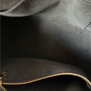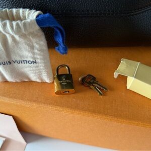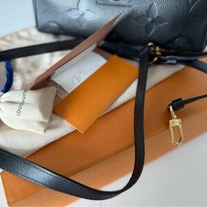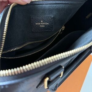 Chic Louis Vuitton satchel in black. Features gold hardware and signature monogram.