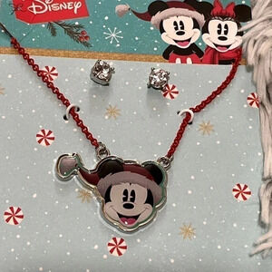 Mickey Santa Christmas Necklace and Earrings Set