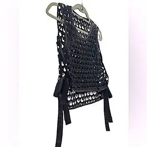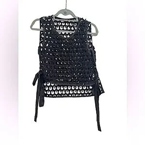 by Anthropologie Crochet Tank Top. Front Beading. Side Ties. One Size. Black.