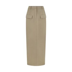 Step out in style with this elegant beige halter maxi skirt. Perfect for any occasion, this skirt offers a sophisticated look with its sleek design and flattering fit.