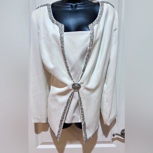 Midnight velvet Elegant White Blazer with Silver Accents size 18W. Underlay flap attached. Chic white blazer featuring silver embellishments. Perfect for formal occasions.