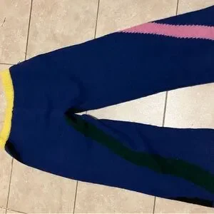 Bobo Choses Blue Knit Pants with Yellow Waistband