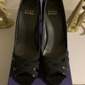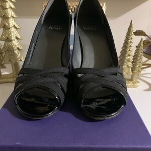 Preowned Chic black peep-toe heels by Stuart Weitzman. Perfect for elevating any look.