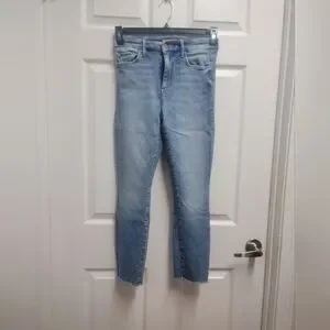 MOTHER Light Blue HIGH WAISTED LOOKER ANKLE FRAY JEANS