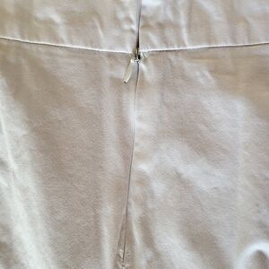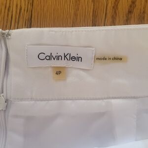 This chic white mini skirt by Calvin Klein features a stylish pencil silhouette with elegant ruching, perfect for casual or resort wear. Its crisp design and fresh color make it a versatile addition to any wardrobe, ideal for sunny days and relaxed outings.This mini skirt is pre owned but it's in good condition, just has a small scratch,as seen in one of the photos.