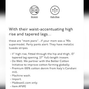 MADEWELL Jeans Blue Perfect Vintage Metallic Tuxedo Stripe Edition Denim Size 24