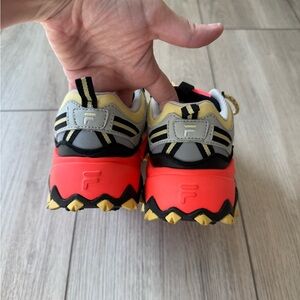 Lightly worn Size 7 💛 These retro-inspired hybrid hiker sneakers come coral, black and gray paneled uppers with leather and mesh construction.