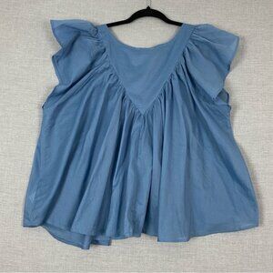 Maurices Babydoll Top / Shirt. Women's tag size XL. 100% Cotton. Very airy material. Baby blue. Ruffle cap sleeves. V neck with split.