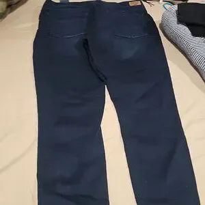 Classic straight leg jeans in deep blue. Perfect for versatile styling. Comfortable and durable fabric.