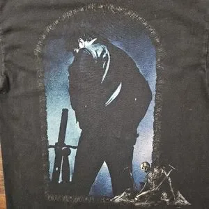 Flaws: Dark spots are water droplets. Tiny hole. Tee shows light color fade overall due to wash and wear giving it that true vintage look.