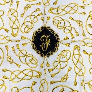 #91 New Tag On FIGARO Paris (Big Series) Mini Scarf Cotton/Slk 22"x22" , color blach white with yellow rope, Made In Paris