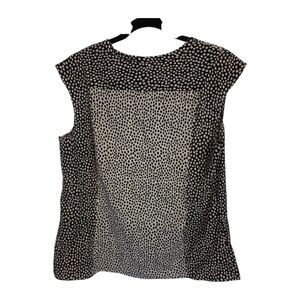 Chic and timeless, this Talbots sleeveless blouse features a modern black and white spotted print with a flattering tie-neck detail. The lightweight fabric drapes beautifully, making it perfect for work, casual wear, or layering under a cardigan or blazer.