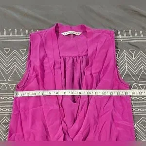 Good condition. Size P. Beautiful pink color. 100 percent silk. Sleeveless style. Vneck. Measurements and fabric content listed above in pictures.