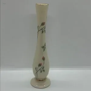 Elegant Cream Lenox Rose Manor Bud Flower Vase Made In The USA 7.5 x 2 Inch.
