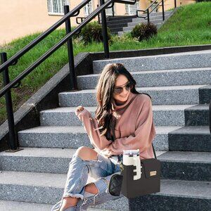 Features: Chic and versatile crossbody with a soft color palette that elevates any outfit. Adjustable strap for a comfy fit, plus a built-in water bottle holder that fits most bottles with a secure strap—great for staying hydrated. Insulated lining keeps drinks hot or cold longer, making it perfect for all seasons. Organized compartments include a zippered section, card clips, and removable dividers, so your essentials stay neat and accessible.