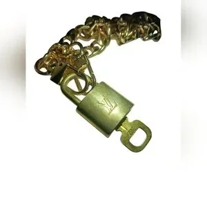 Louis Vuitton Gold Padlock #307 with Key & Unbranded Gold Tone Chain Included