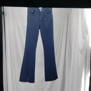 FRAME Women Le One Flare Jeans Keller Blue Stretch Denim Mid Rise Split