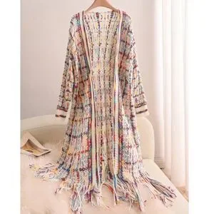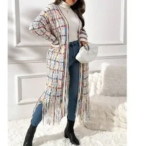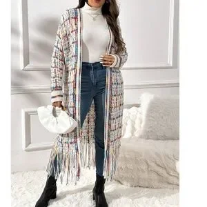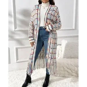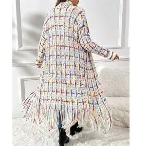 Plus Multicolor Fringe Hem Open Front Long Cardigan