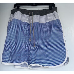 Sacai Blue Gingham Check Cotton Shorts Drawstring Men's Size 3 Large Luxury