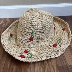 Vince Camuto Cherry Embroidered Straw Sun Hat