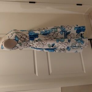 Burryco White/Blue Erika Floral Midi Dress Sz 8