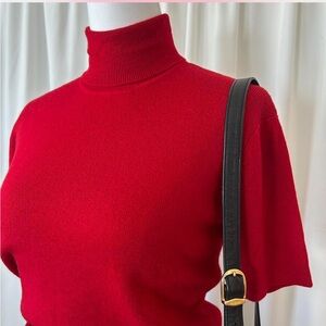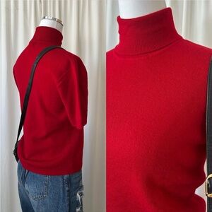 Vintage 1990s Red Jones New York Wool turtleneck sweater short sleeve large.