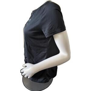 Elevate your workout wardrobe with this stylish Reebok performance shirt. Designed for comfort and functionality, this shirt features breathable mesh panels that enhance airflow for a cool workout experience. The lightweight fabric ensures flexibility and ease of movement during any activity. Perfect for running, gym sessions, or casual outings, it's a versatile addition to any activewear collection. Key features include: - Lightweight and breathable fabric - Stylish black color with mesh details - Comfortable fit for workouts - Size: Medium - Ideal for various activities