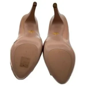 Step into timeless elegance with these stunning Prada patent leather pumps in a sophisticated beige tone. Crafted in Italy, these heels are a striking blend of bold design and luxurious craftsmanship. Featuring a 5.5-inch heel and a 2-inch platform, they provide dramatic height with surprising comfort.