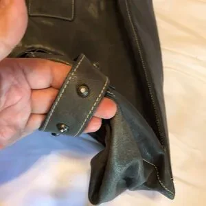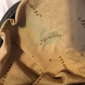 On the inside it has a light green stain on the lining bottom, please see pics