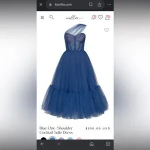 Elevate your evening look with the Millau Blue One-Shoulder Cocktail Tulle Dress. This elegant piece features a stunning blue hue and a chic one-shoulder design, perfect for any special occasion.