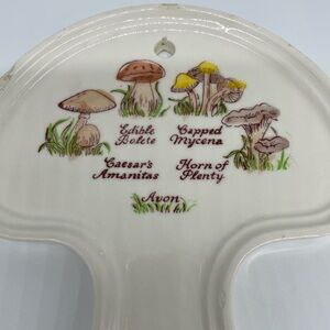 Vintage Weiss Mushroom Shaped Plaque Spoon Rest Hand Painted Avon 1980 Shrooms
