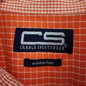 EXCELLENT CONDITION, 2 tone orange & white plaid button up, long sleeve shirt with an embroidered, white & purple Clemson tiger paw on the chest pocket. 100% Cotton wrinkle free