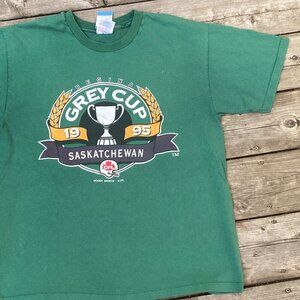 Vintage 1995 Woody Sports CFL Saskatchewan Grey Cup T Shirt Large Green