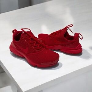 Vibrant red Nike athletic sneakers. Perfect for sports and casual wear. Nike Presto Fly Shoes Red Running Shoes 913966-600 size 4 Y women’s size 5.5 pre-owned good condition