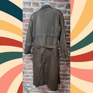 Pelle Cuir Leather Coat M | Vintage 80s Brown Double Breasted Trench