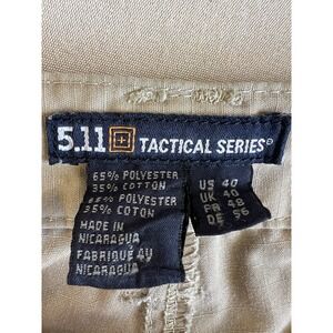 The 511 Tactical Shorts for men in size 40 (waist 38 inches and inseam is 12 inches) are designed for outdoor activities such as hiking and workwear, featuring a high-rise canvas fabric with a zip closure and elastic waistband for comfort. These khaki cargo shorts have cargo pockets, making them practical for all-day use. The brand 5.11 Tactical is known for its durable outdoor clothing, and these shorts in solid beige color are perfect for summer, fall, and spring adventures.