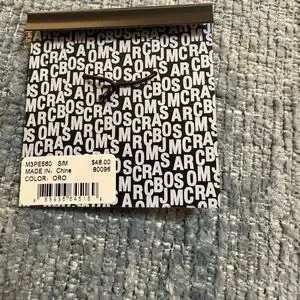 This stylish ring is made of a tin/brass base with 10-karat gold plating. It is a statement fashion ring from the now-discontinued Marc by Marc Jacobs diffusion line