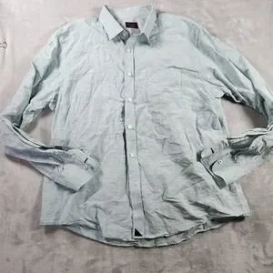 UNTUCKit Shirt Mens XL Green Long Sleeve Linen Blend Button Up Wrinkle Casual