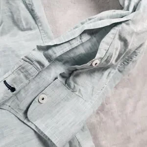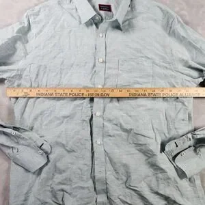The UNTUCKit Shirt for men in XL size is a green long sleeve button-up shirt made from a linen blend. It features a solid pattern, collared neckline, and a regular fit. This casual shirt is lightweight, machine washable, and suitable for all seasons, making it a versatile option for everyday wear. The brand UNTUCKit offers a classic and business-inspired design with a button and pocket accent, perfect for a casual yet stylish look.
