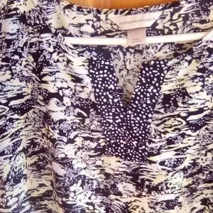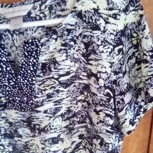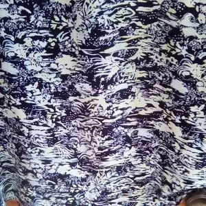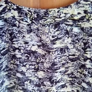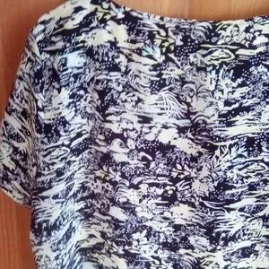 Elegant blouse with black and white patterns. Versatile for any occasion.