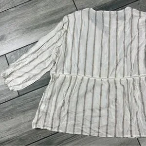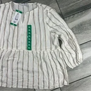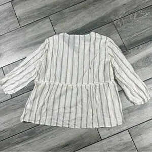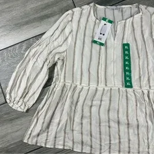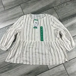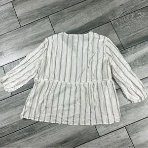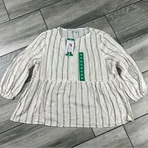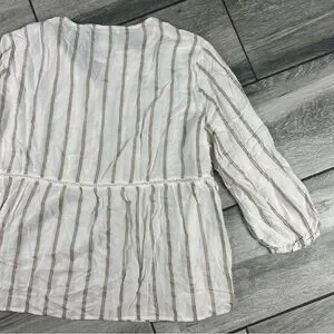 Stylish long sleeve top with cream and brown stripes. Perfect for casual outings.