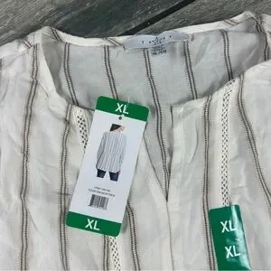 Fever Cream and Brown Striped Long Sleeve Top