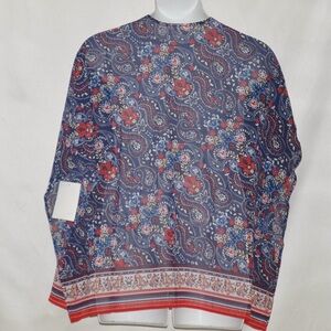 NWT Belle by Kim Gravel Navy Border Print Woven Cardigan