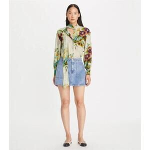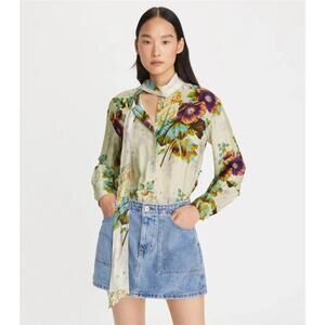 Sold Tory Burch Printed Viscose Bow Blouse top $448 size 14 NN34