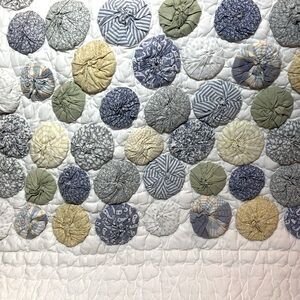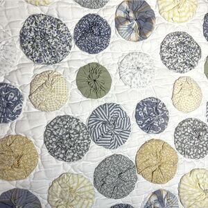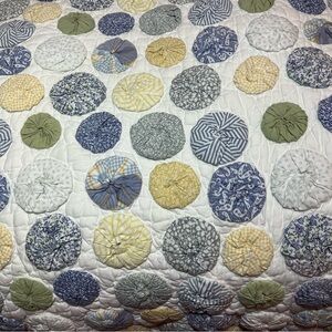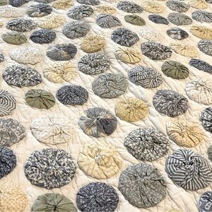 Rare!! Pottery Barn Handmade Yo-Yo Puff Quilt 90”x90”