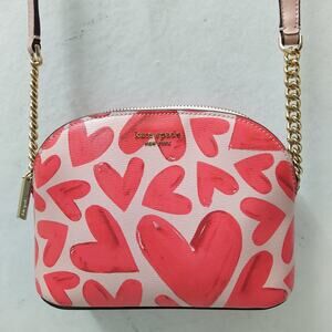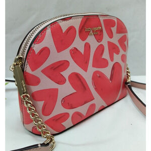 Kate Spade New York Pink Hearts Leather Zipper Closure Chain Strap Crossbody Bag