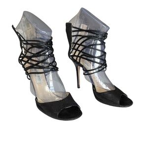 Jimmy Choo "Quantum" Black Leather Lattice Strap Sandals Size 10.5 (40.5)