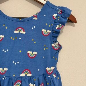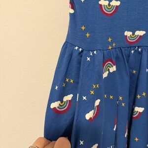 Girls, Hanna Andersson Pocket Swing Dress in a rainbow print on royal blue background